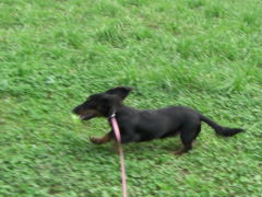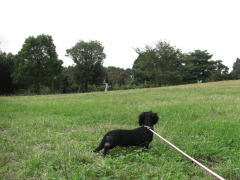 草っぱらの方で走ってみました。ここはドッグラン外なのでリード付き。ロングリードとはいえ、ワタシも走らねば・・ぜーぜー。写真ブレブレですね^^; でも楽しかったです。