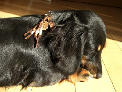 結局納得いく写真は撮れず(苦笑) まーカメラマンの腕がこんなんだからしょうがないっすねー。これから長い付き合いになる首輪なのでチャンスはいっぱいあるでしょう。ってことで諦めて、首輪だけの写真も一枚。